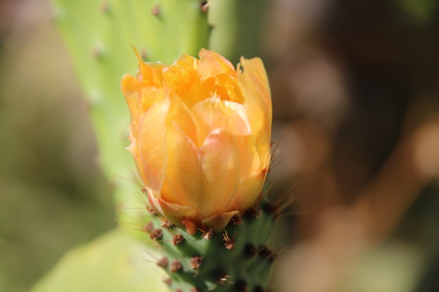 A gorgeous yellow flower on an unknown cactus. Well unknown to me! I rarely walk the boundary of the house which sounds grander than it is. But this is on the bank behind the house. Yesterday I found it. The flowering cactus. Not the bank. We have a few varieties of cactus. I must look up the names. The only one I know is the prickly pear as I’m trying to save a few on the bank and in the garden from cochineal fly. Good old neem oil is doing the trick.