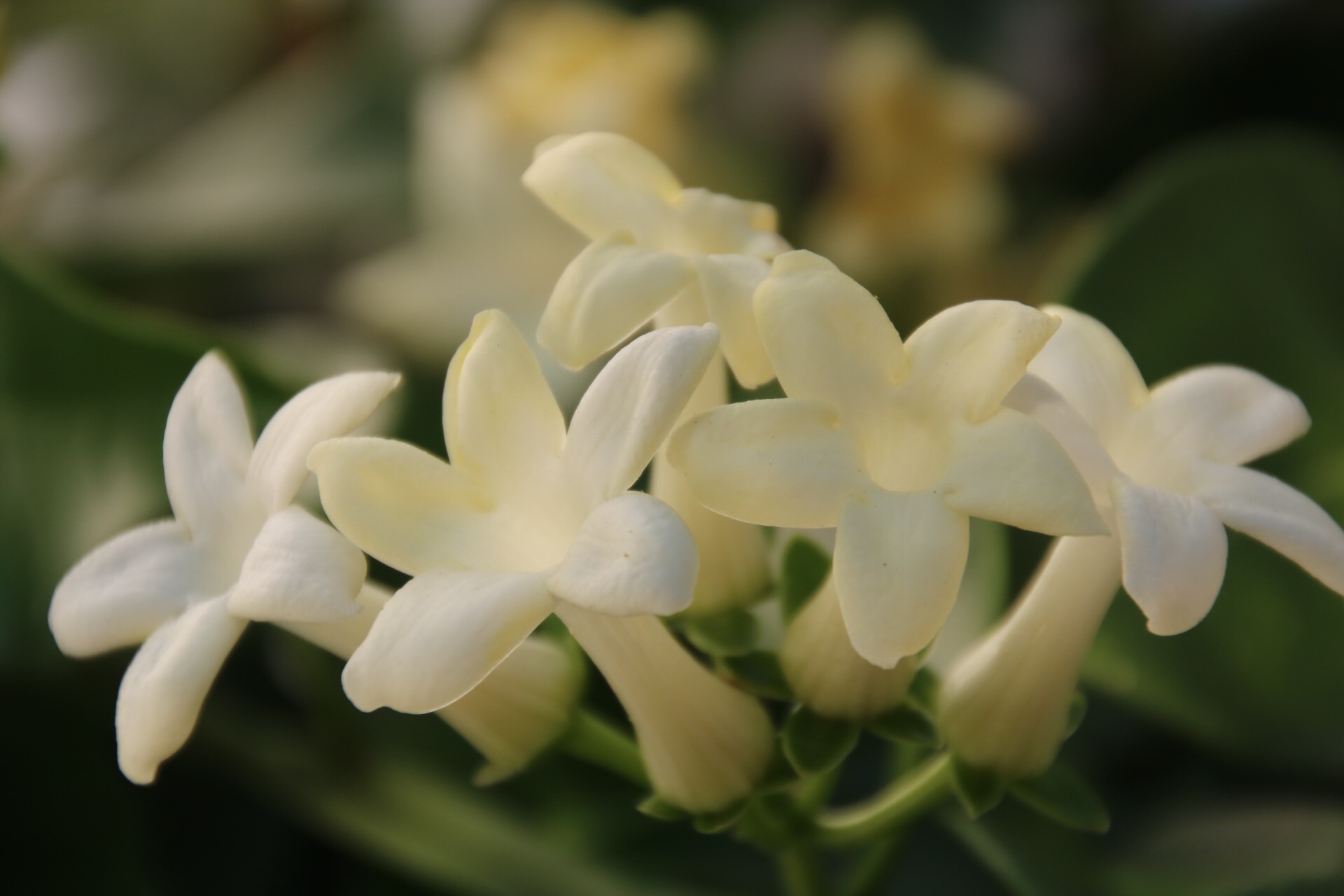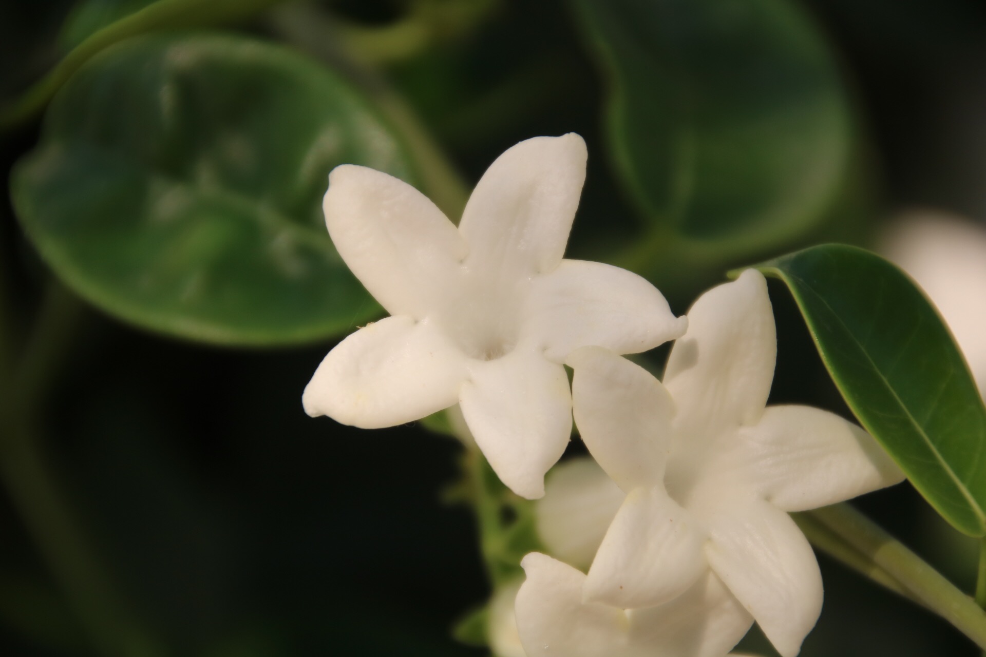 We have 4 different jasmine dotted around the garden. This one is sambac ~ highly scented and one that is used in perfume and tea ~ an evergreen which is grown in a large pot. We also have jasmine azoricum ~ a lemon scented jasmine rambling over some black railings. It is a bit woody but a great scent. There’s a scraggy white one which I’m not sure of its name but it springs up everywhere.