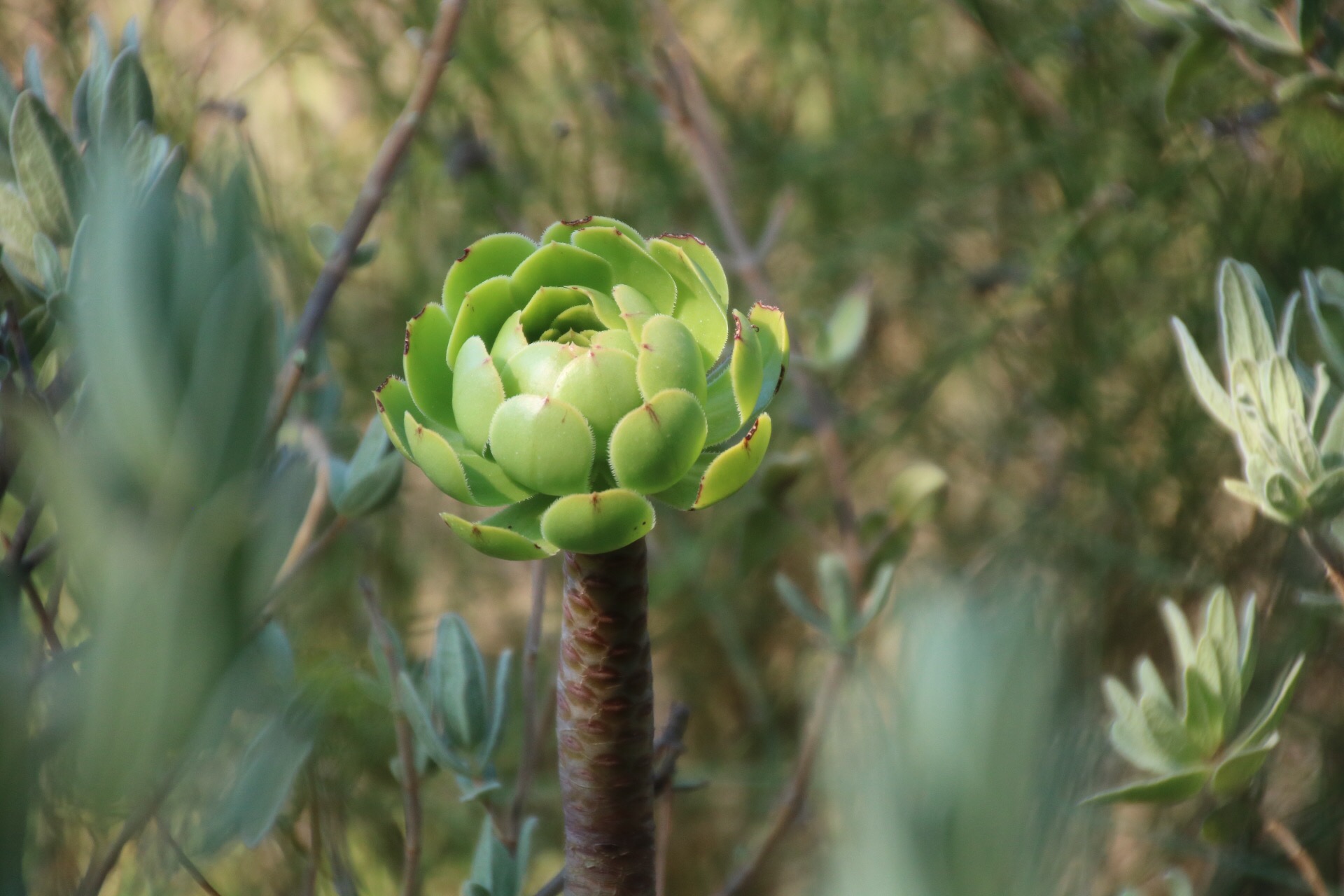 This aeoniun was a broken limb from one I have in a pot. Shoved in the ground hoping for the best and ignored. It has, along with a few others taken off. It always reminds me of aliens. I have no idea why.