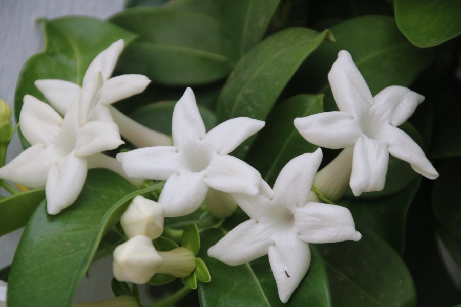 I smile when I look at many of the plants growing in the garden. This is one of them and I have grown it as an indoor plant. The waxy white flowers of the stephanotis. Not enough flowers for a bridal bouquet so Ian fear not. It’s in a large pot, a bit woody but has been flowering for over 8 years. Not continually obviously.