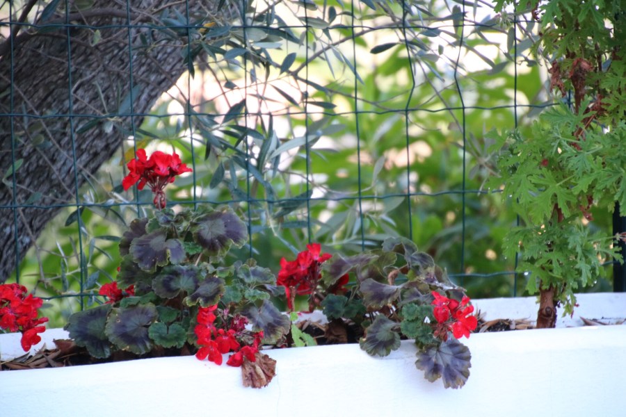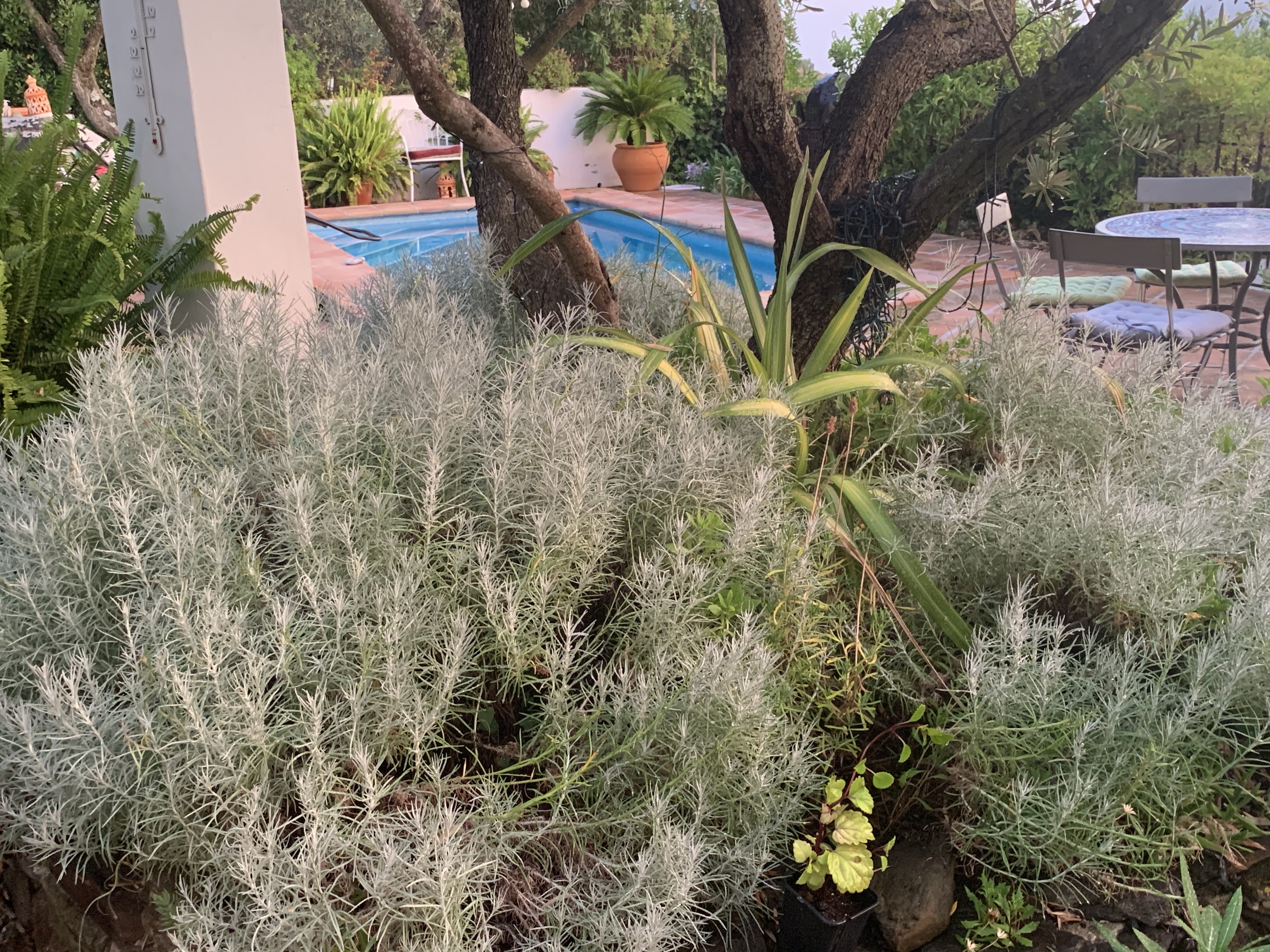 You can now get a strong whiff of curry as you walk up the path past the olive tree. I planted three curry plants under the olive in the raised circular bed and have quickly tidied them up ~ but my attempt at topiary is rough. Just don’t ask me to trim your hair.