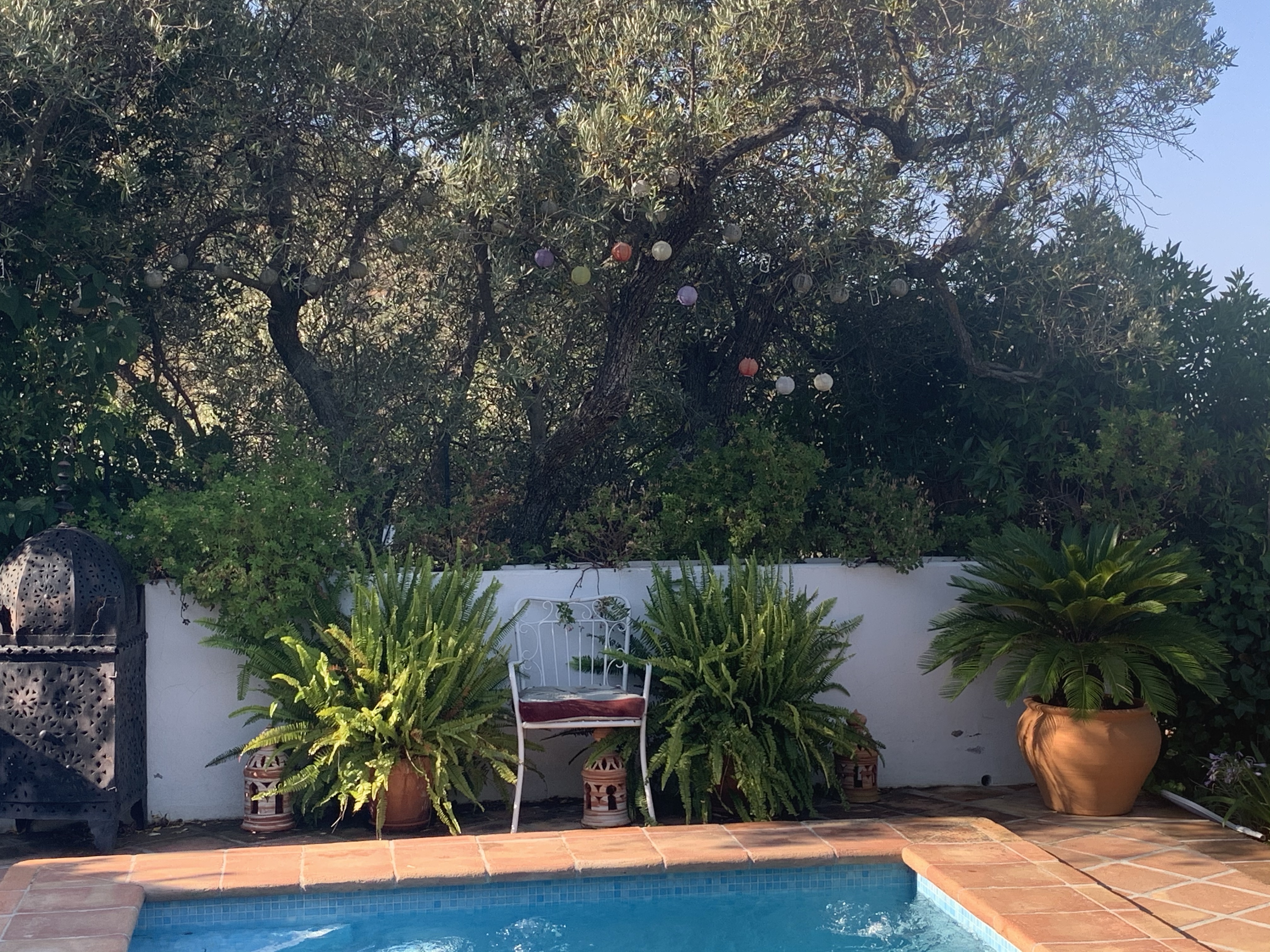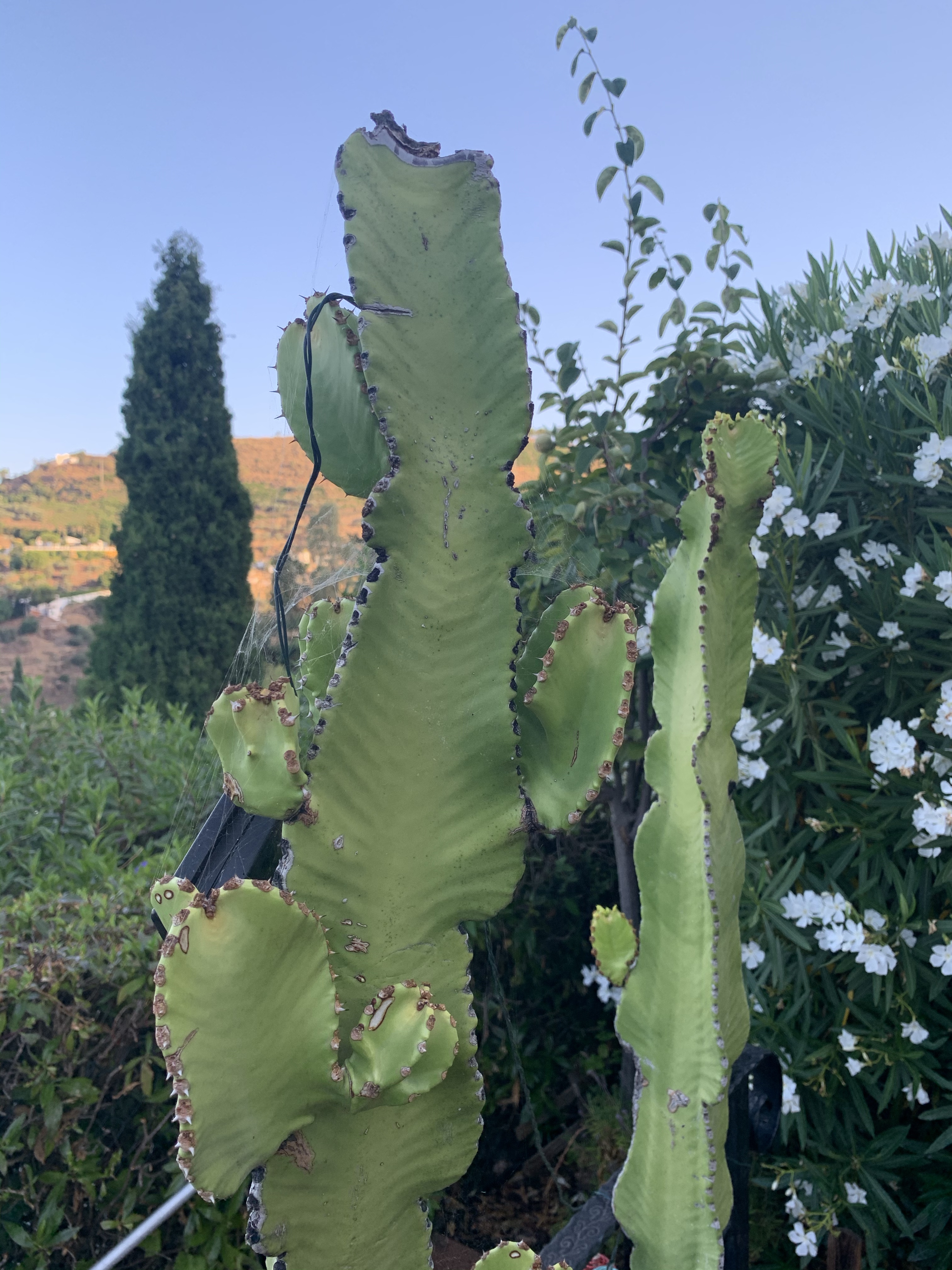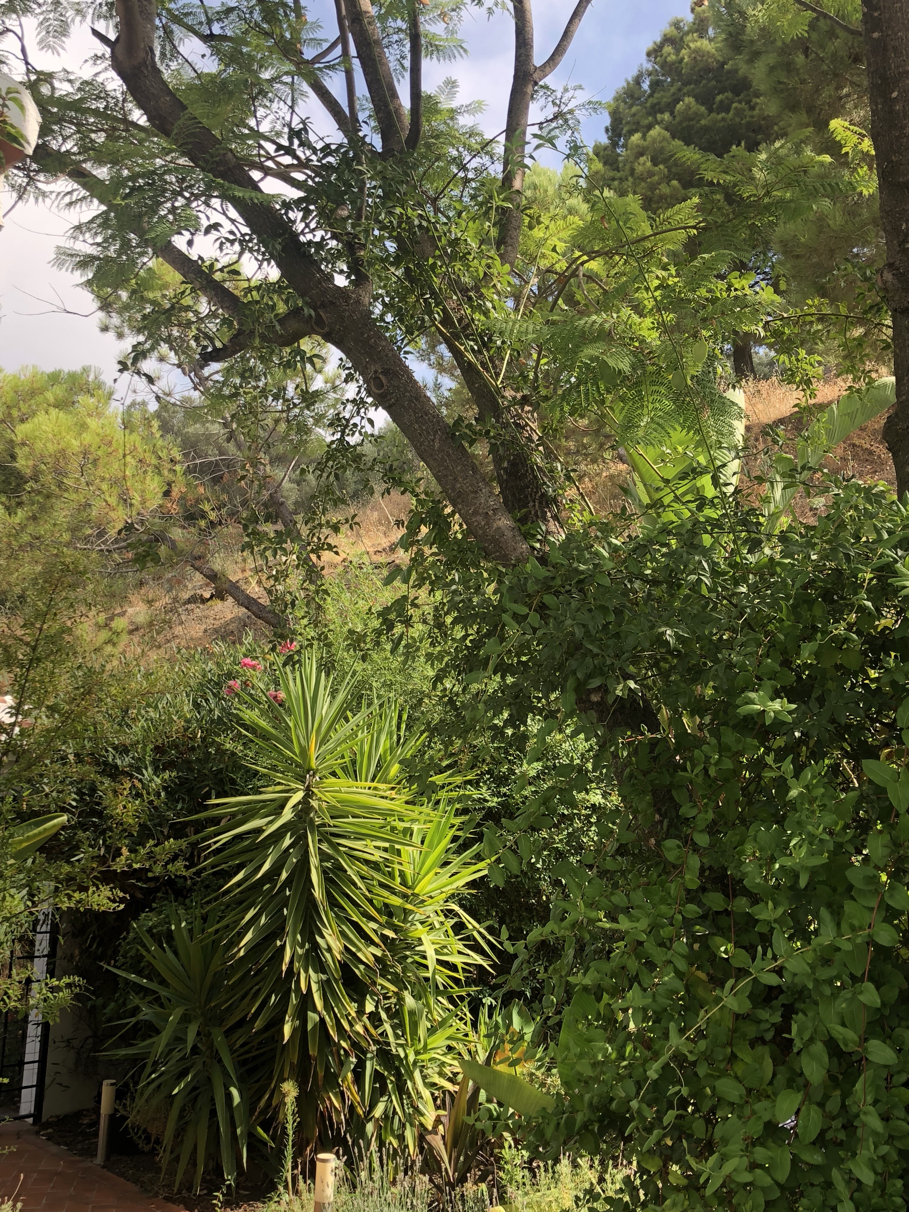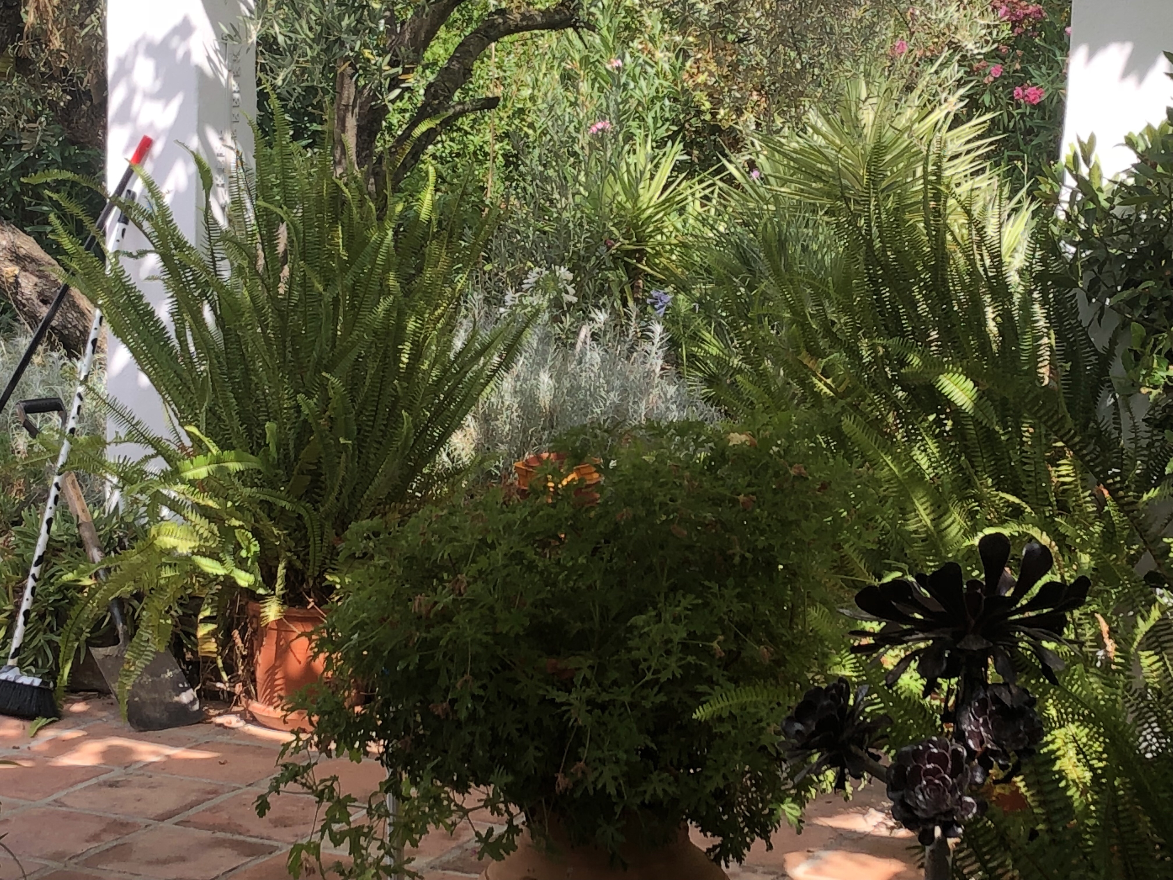 Another plant growing outside is a Swiss cheese plant. In Olden days – my childhood – popular indoor plants included the rubber plant , the Swiss cheese plant and a purple tradescantia. We have the latter two growing in the Mediterranean garden in Cómpeta. I never liked them indoors but they are tolerated in the garden. Unlike the clivia which was an indoor plant in my office which I loved in a pot so I and am happy to have a dozen in the gate bed.