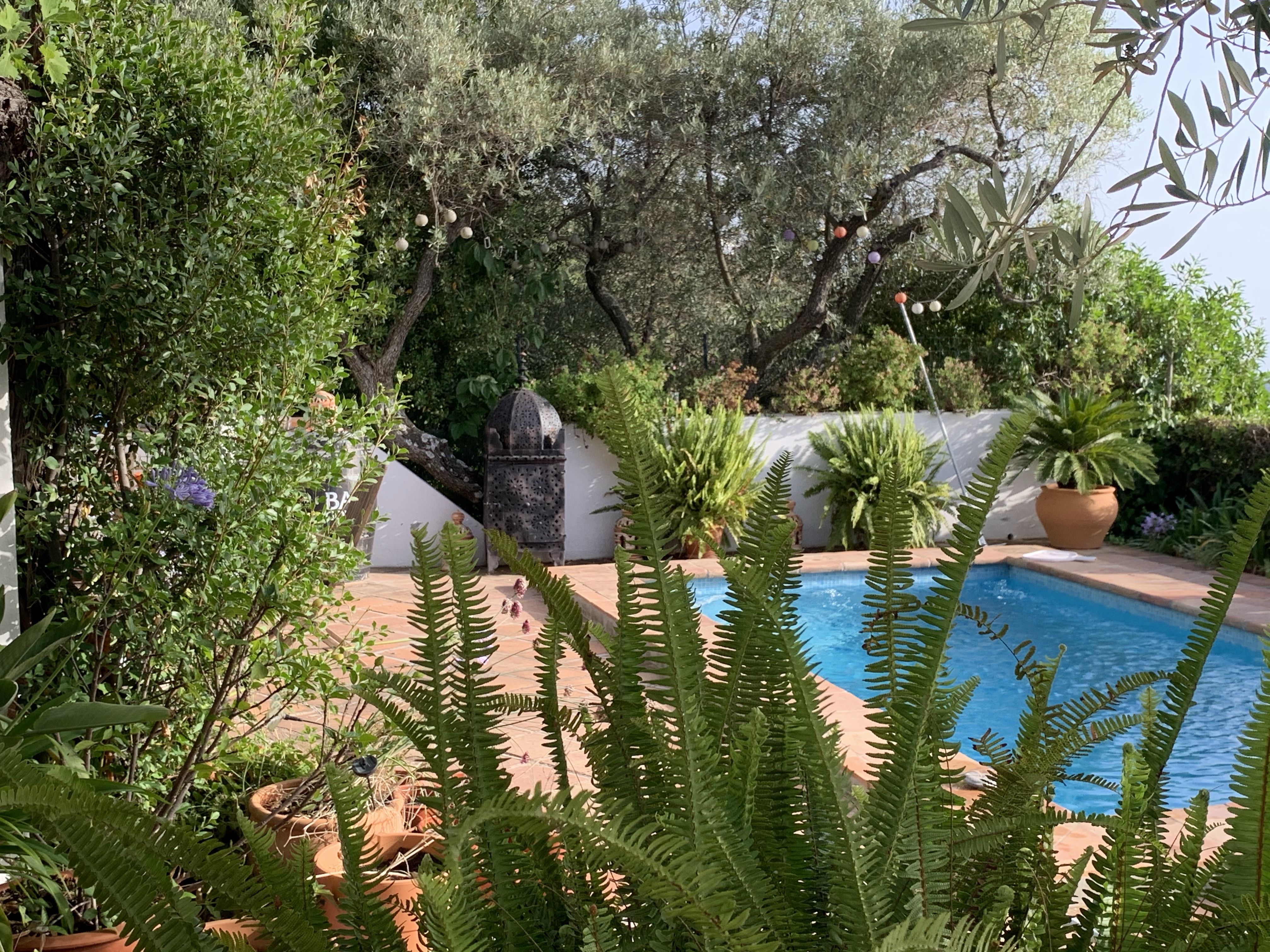 The gardener knew we were arriving and had been in and had cut the hedge. Had shaped the olive tree and had cut the roundabout that’s not a roundabout as well as the rear banks. None of which I am safe to do these days. I’d end up rolling down the hill to the main road and beyond. Not a pretty sight. Me. Not the banks as they look great.