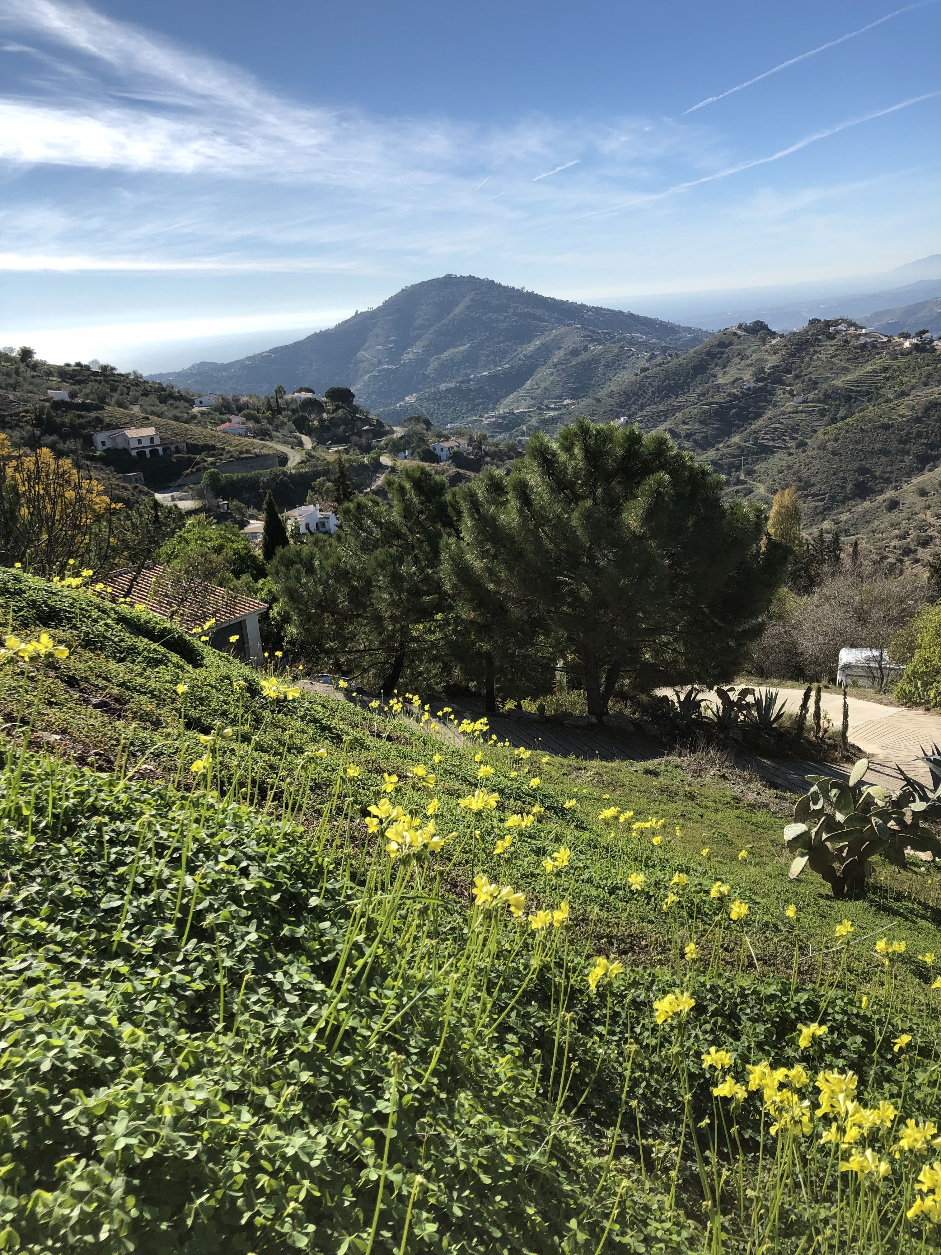 It’s been over 3 months since we were last in Spain. For months I’ve been in pain from a prolapse disc and walking hasn’t been easy. And despite my vanity I succumbed to a walking stick. Of course it had to be a flowery one.