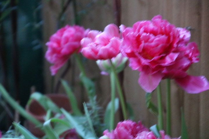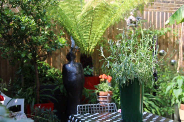 I’ve said the back garden is small. It is. Very. Everything is in pots. Some neighbours have small lawns. And I mean small. But I’ve seen them re turf every few years. There is not enough sun in some of them. So the courtyard is paved. Tree ferns, jasmine, honeysuckle, banana, agapanthus,clematis,mock orange all in pots. It’s a small space. So scent is important. Makes watering a bit of a pain but when we bought the tree ferns we thought if we moved we could take them with us -15 years later we are still there. It’s one thing that Ian really loves – the tree ferns. I was lucky this year. I didn’t straw the crown or wrap them as I was away when the cold spell hit and I panicked that we may have lost them. There are 5 in the garden. The tallest is about 6ft odd. But they survived and a feed of alpaca poo works wonders.