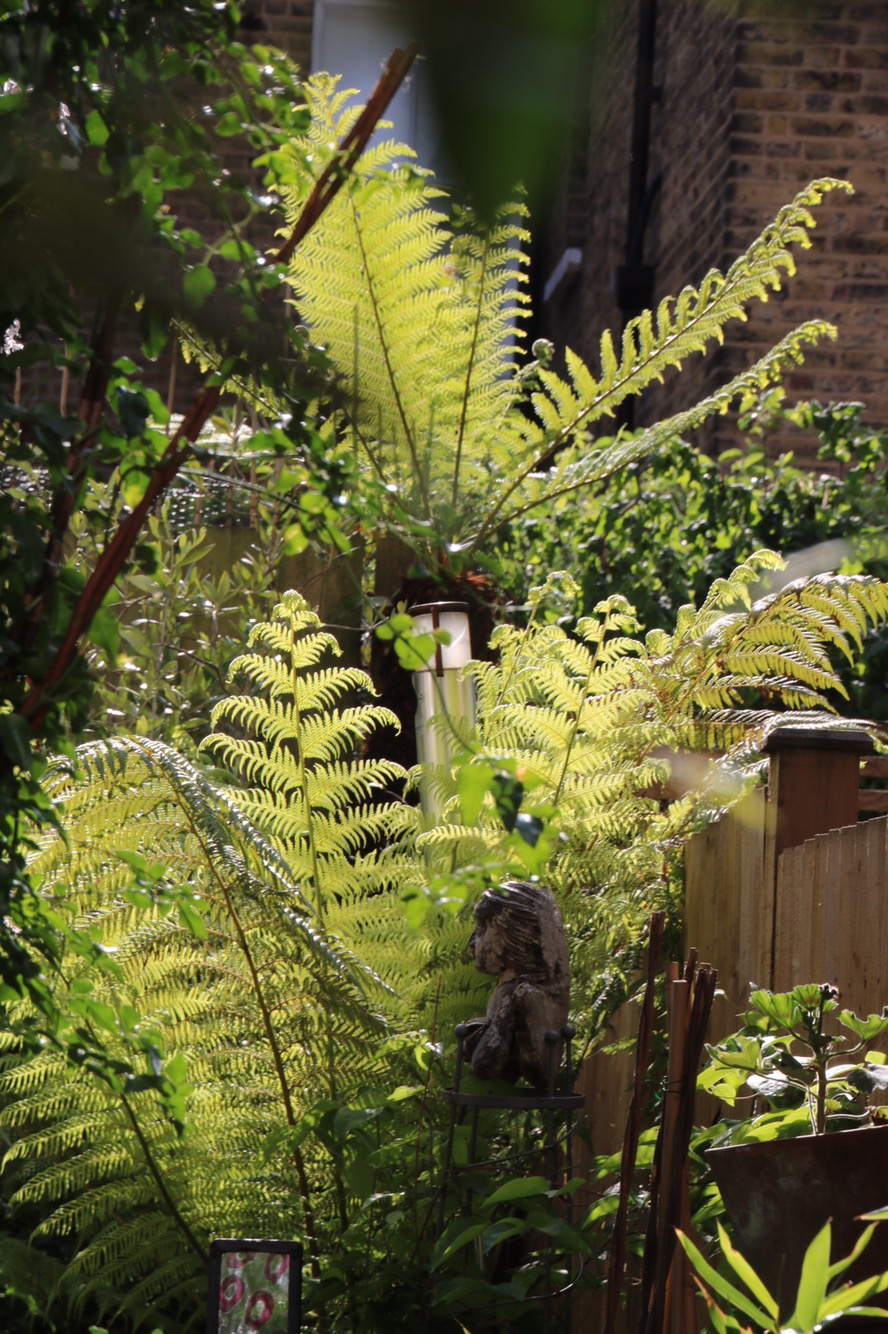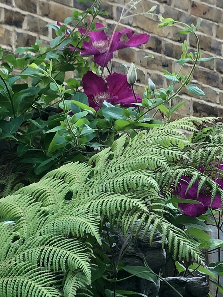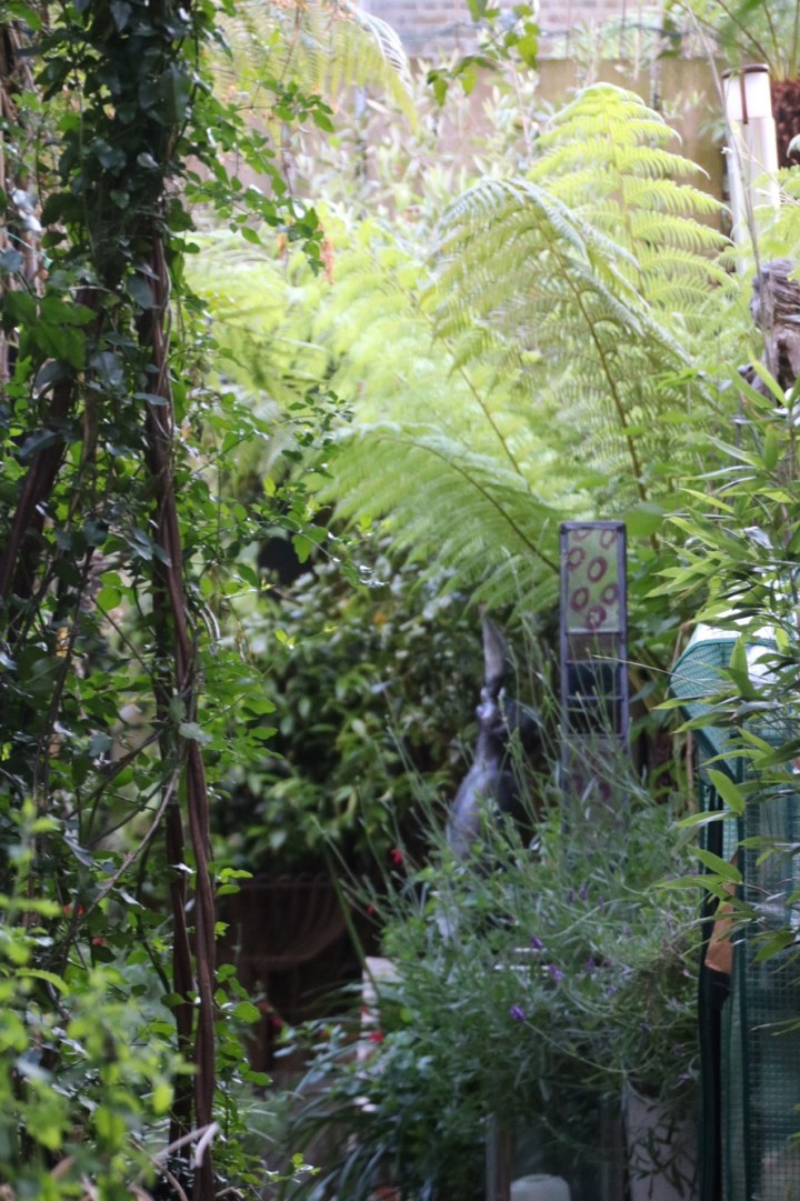 The back garden is small. Very small but full of pots. The tree ferns are in pots. The foxgloves and the the clematis. All in pots. The garden is fed with alpaca poo courtesy of Lou Archer. Well not Lou but her alpacas obviously. She has s new product which she launched at RHS Chelsea especially for tree ferns. A must have for me when I get back and it’s on her