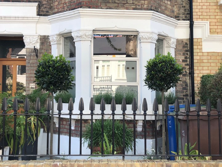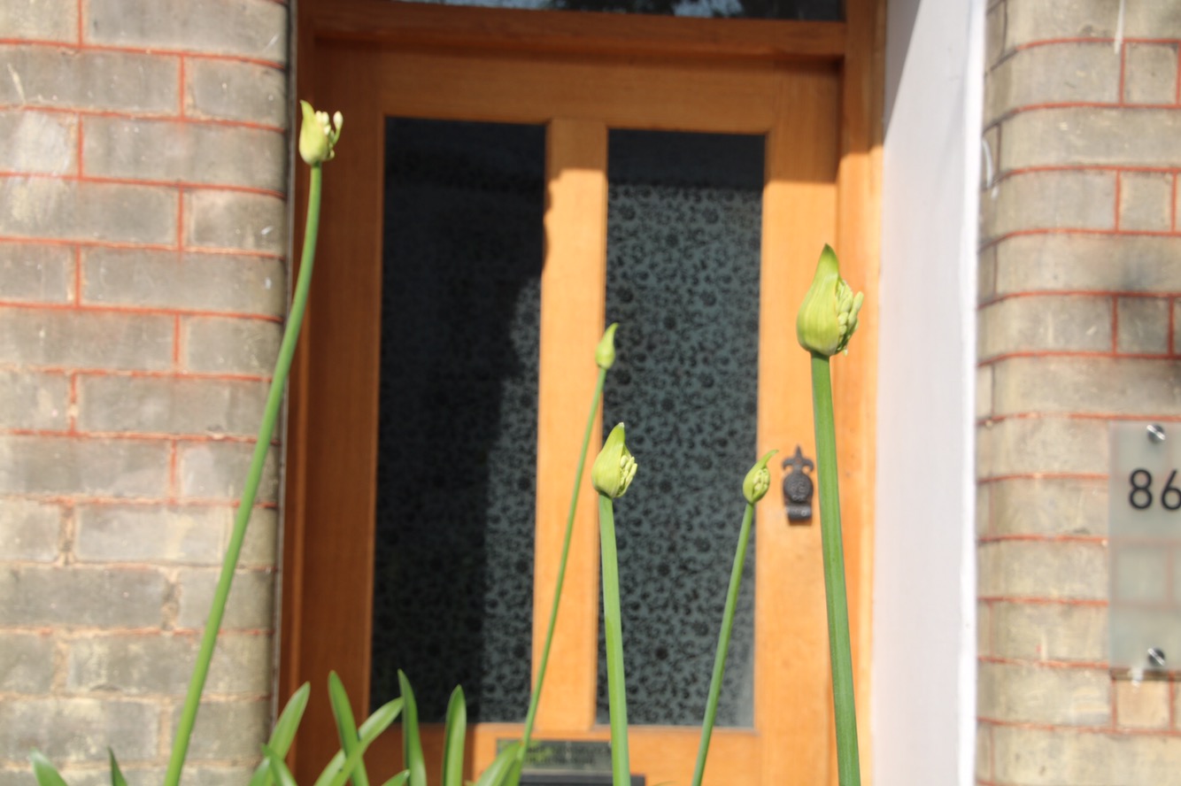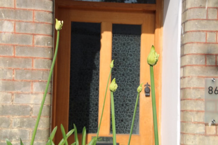 Having had the front garden ‘done’ recently – new wall, new path, railings and new gate we decided to do some replanting of pots at the front. We bought two new standard bays. A bit of a cliche really but they suit the space. I bought two new pots from The Nunhead Gardner. Got them home and realised that once the bays were in the pots they would be too tall for the space. Surprisingly I didn’t have to take them back. Ian said that we should repot the agapanthus into them. And buy two more. Result!
