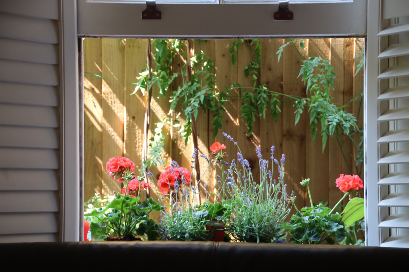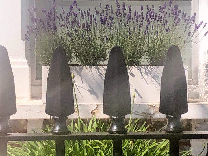 I always have window boxes but as I am away so much these days I wanted something that didn’t need a lot of water. The garden is my domain and whilst Ian waters he’s busy and it’s not fair on him to have to come home and start watering. So again this year I opted for lavender. It worked well last year but this year I just used lavender. It looks good. Ignore the bins. I haven’t told Fred yet. But we are looking for some bin covers. Next door has a fab one with a green roof. But. It’s expensive and the sides are open. Defeats the object really. And Fred would sit on the plants anyway.