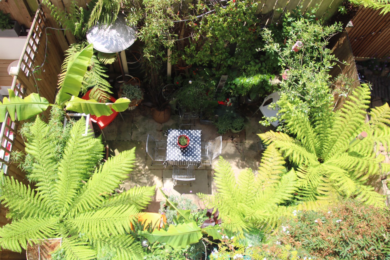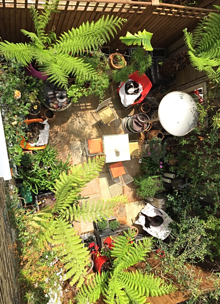 This is a pic from two or three years ago taken from the upstairs window. Things have been moved. Things have been removed. Others added. But it gives the sense of the space. Or lack of it. I must take an up to date one. Preferably when the washing isn’t on the line.