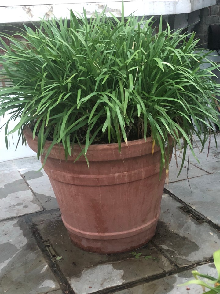 Now I love agapanthus. We have two enormous white ones and a very large small blue flowered one in the front. All needed repotting. Sadly one of the whites struggled through the winter and in parts had turned to mush. The first time I’d lost an agapanthus. The big blue had already started to bud up.
