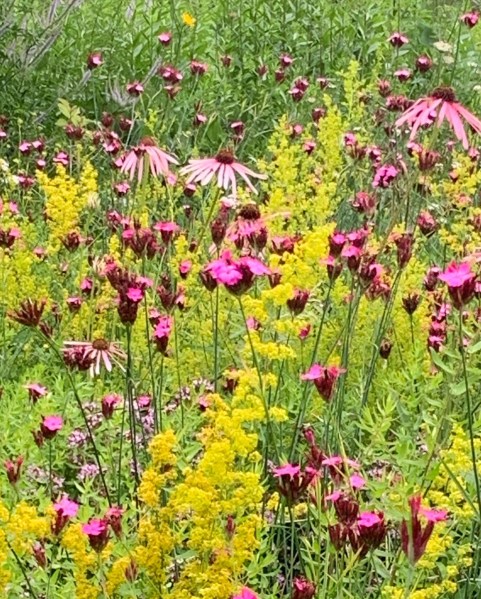 Another surprise was on the central border. These Carpobrotus edulis were straggly. Dry and almost non existent over the last few years. But I cut ( hacked) them back last year and thought if they recover they stay. If they don’t they go. It looks like they listened and hopefully we will get those glorious pink flowers again this year. Native to South Africa it must have liked last years extreme heat and drought. Also known as sour fig, or ice plant. We also have a large clump on the rear bank which to be honest I largely ignored this visit. The bank. Not just the clump.